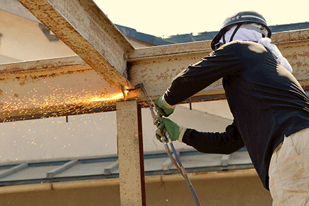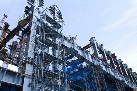 ビルや橋梁、倉庫や発電所など、様々な構造物の建設に必要となる、足場・安全設備を設置します。外壁の塗装や補修のための工事にも必要となります。当然足場の解体も含まれます。