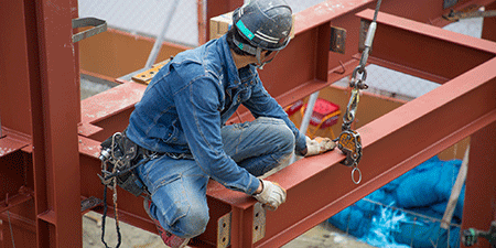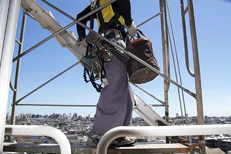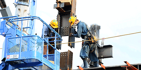 高層ビルなどで、タワークレーンを使い、人間でいうと骨組みになる鉄骨を吊り上げ、組み立てていきます。当然安全に十分配慮した形ですが、高所での作業を行います。「鉄骨建方」と呼びます。安全のためのネットや安全帯の設備の設置も同時に行っていきます。鉄骨工事を専門に行う鳶を鉄骨鳶といいます。